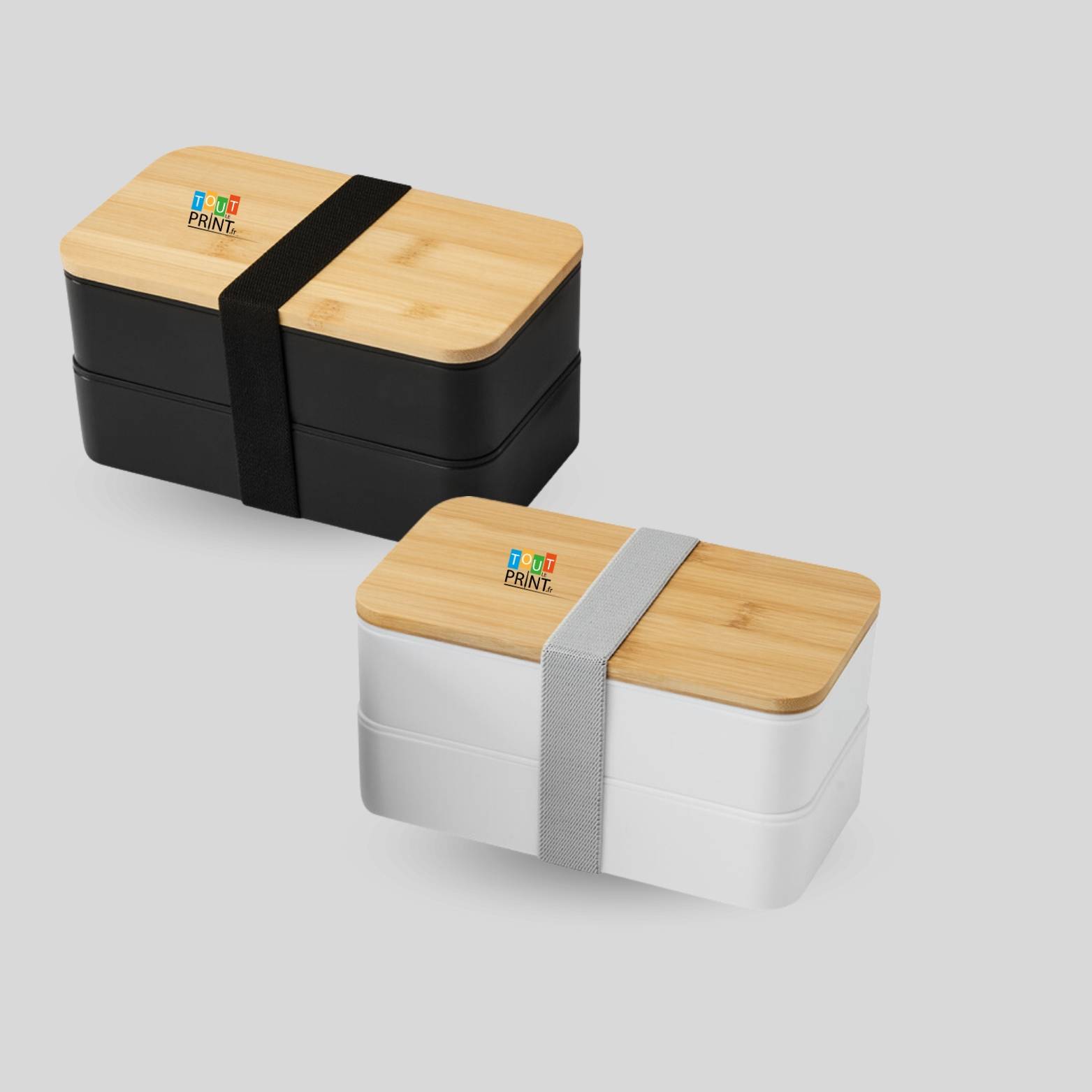 En résumé, la boîte à lunch DOUBLE LEVEL combine fonctionnalité, style et durabilité avec ses deux compartiments, son couvercle en bambou, ses couverts intégrés et son insert de séparation. Avec une capacité totale de 1,1 litre, elle est idéale pour préparer et transporter des repas équilibrés. La possibilité de personnaliser la boîte avec votre logo en fait un excellent outil promotionnel, offrant une visibilité élégante et pratique pour votre marque. Que ce soit pour un usage personnel ou comme cadeau d’entreprise, la boîte à lunch DOUBLE LEVEL est un choix raffiné et pratique qui allie style et fonctionnalité.
