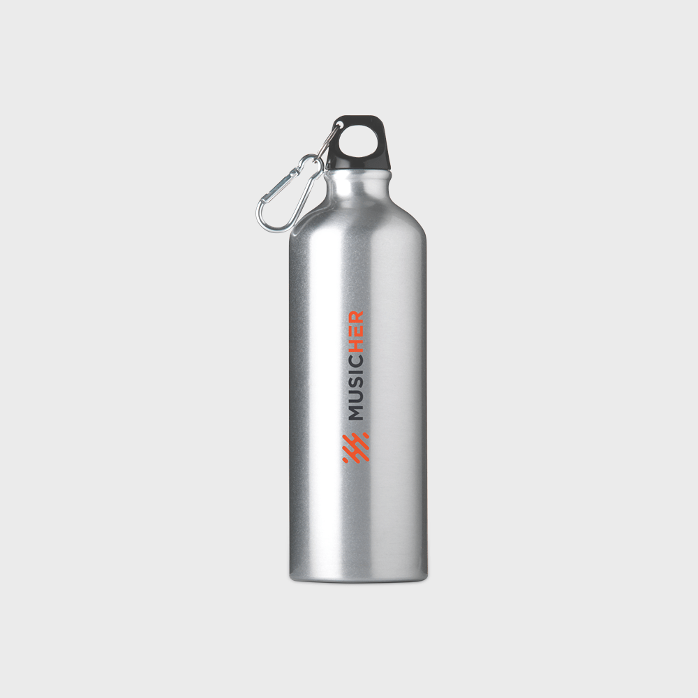Restez hydraté où que vous soyez ! Fabriqué en aluminium recyclé, ce modèle élégant à paroi simple est idéal au quotidien. Il comprend un bouchon à vis en plastique, un porte-clés et un mousqueton métallique . Étanche et certifié GRS.