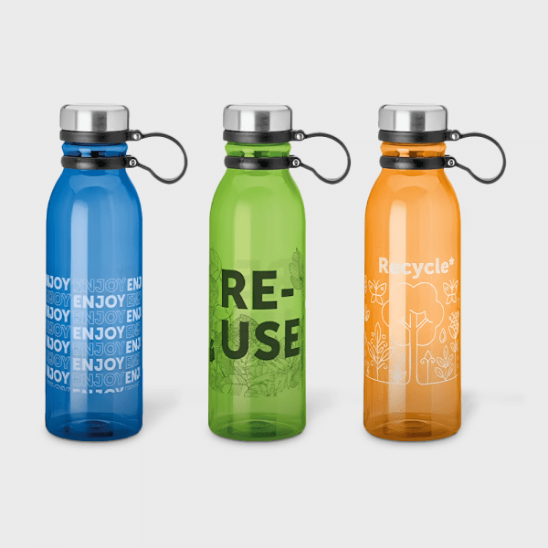 Hydratez-vous avec style grâce à cette bouteille éco-responsable ! Fabriquée en RPET avec un bouchon en acier inoxydable et une prise en main pratique, elle est parfaite pour vos déplacements. Étanche et sans BPA, elle garantit une boisson sûre à chaque gorgée. À noter : ne convient pas aux boissons gazeuses. Idéale pour vos aventures quotidiennes !