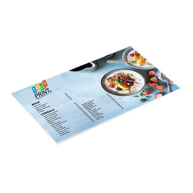 Découvrez les menus en Forex de Tout Le Print, une alternative de choix au traditionnel papier qui saura captiver l’attention de vos clients. Fabriqués à partir d’une mousse robuste d’une épaisseur de 10 mm, ces menus sont à la fois durables, légers et esthétiquement plaisants. Si vous recherchez une façon de dynamiser votre restaurant et d’offrir une expérience unique, nos menus en mousse Forex sont le choix parfait !