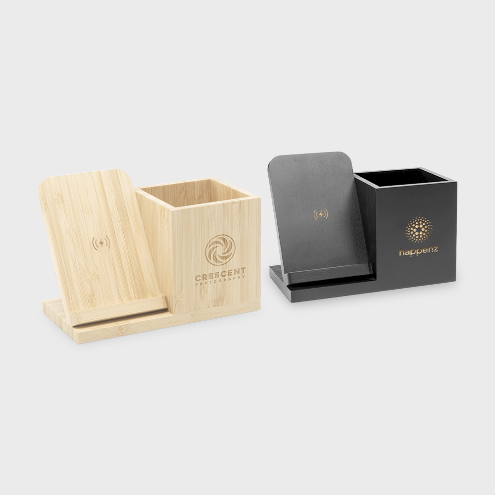 Polyvalent et éco-responsable, ce support de charge sans fil 15W fait également office de range-stylo. Conçu en bambou naturel, il est idéal pour recharger vos appareils mobiles compatibles et organiser votre bureau. Il inclut un câble USB-A sans PVC avec un connecteur USB-C et un manuel d'utilisation. Organisez votre espace avec style grâce à cet accessoire éco-responsable !