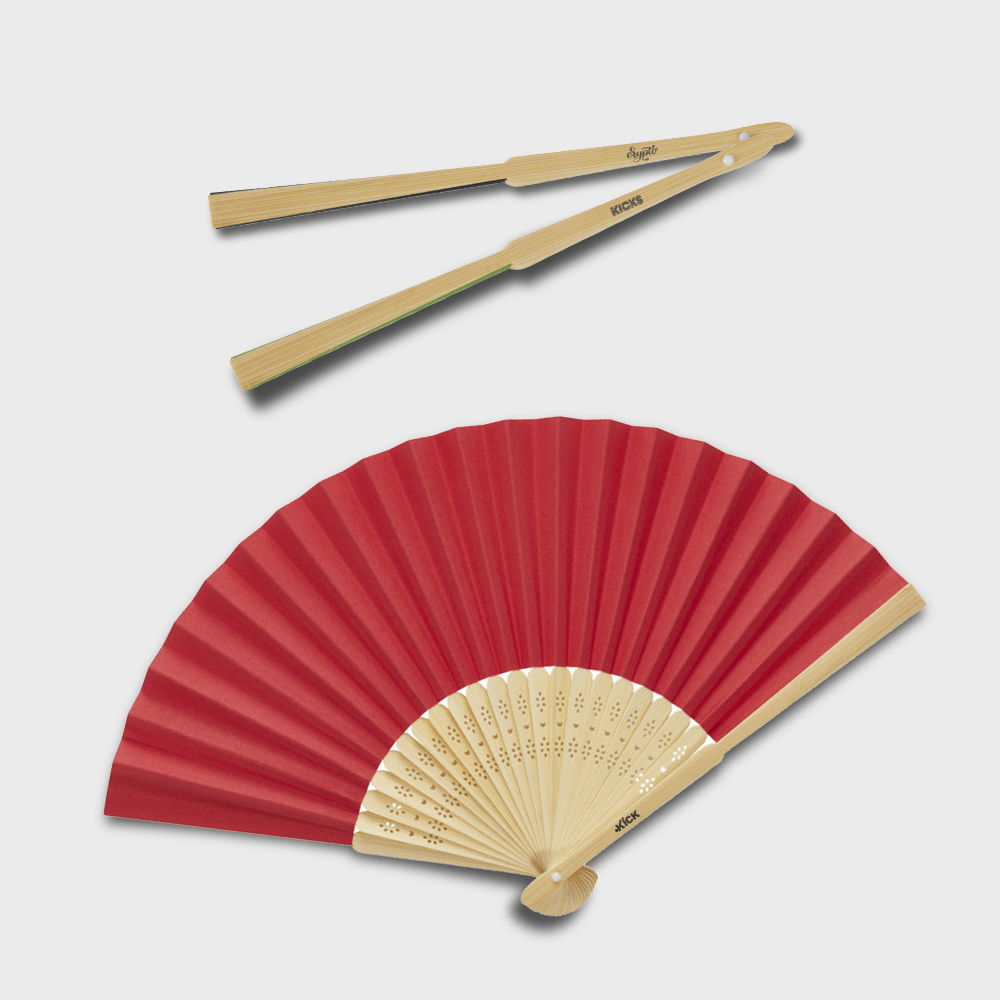 Éventail à main en bambou et papier, disponible dans une large gamme de couleurs. Profitez de ce ventilateur léger et portable, parfait pour les chaudes journées d'été. Commandez votre éventail personnalisé dès maintenant !