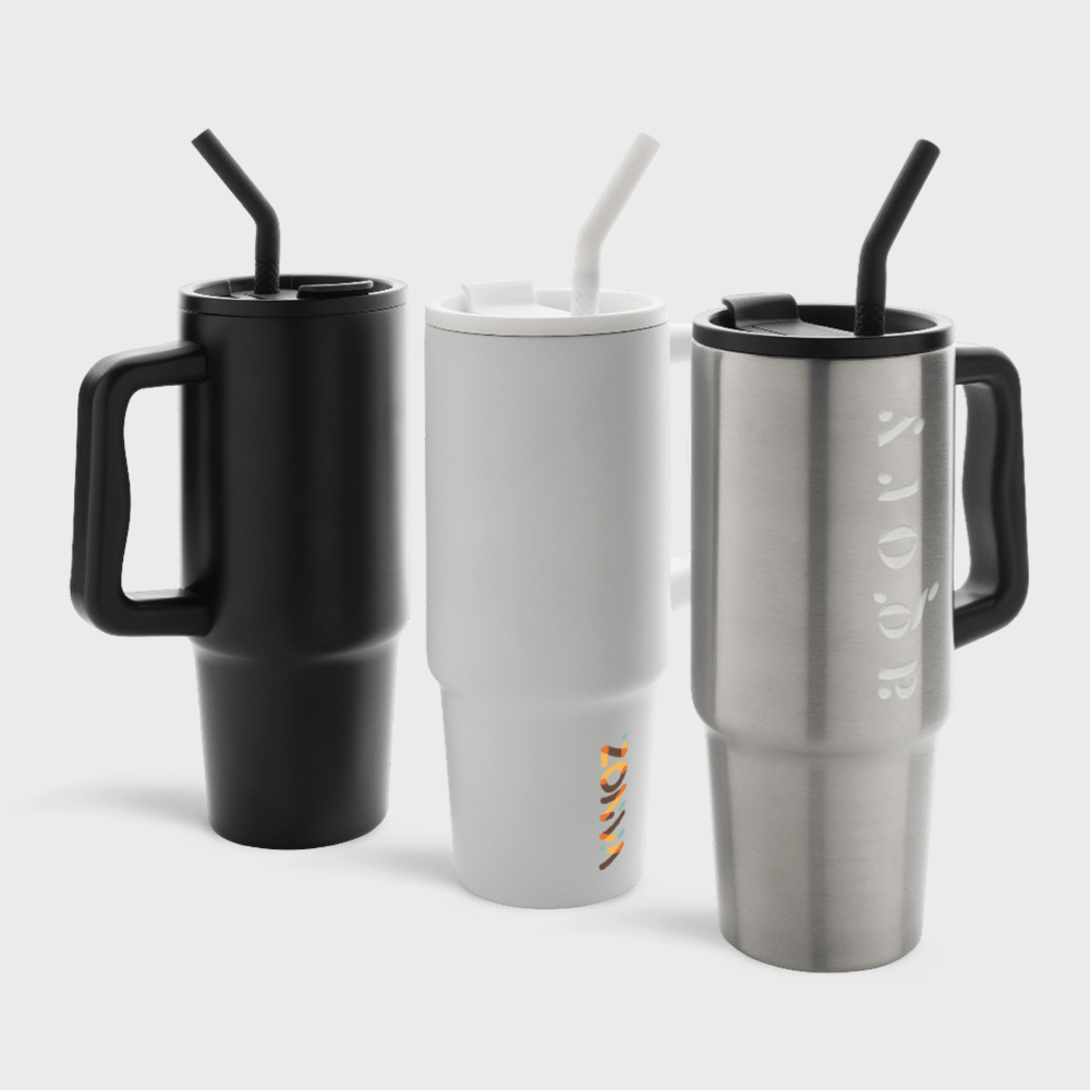 Ce gobelet généreux offre un équilibre idéal entre capacité et portabilité, avec un visuel élégant qui s'adapte à la plupart des porte-gobelets. Sa poignée confortable et sa base profilée sont très pratiques lors de vos déplacements. Fabriqué en acier inoxydable recyclé robuste, ce gobelet de 900 ml est prêt à répondre à tous vos besoins d'hydratation, qu'ils soient chauds ou froids. Il est doté d'un couvercle à vis à double fonction, vous permettant de siroter directement ou d'utiliser la paille incluse avec un embout en silicone. Parfait pour les réunions prolongées, les cours de fitness ou les aventures en dehors de la ville.