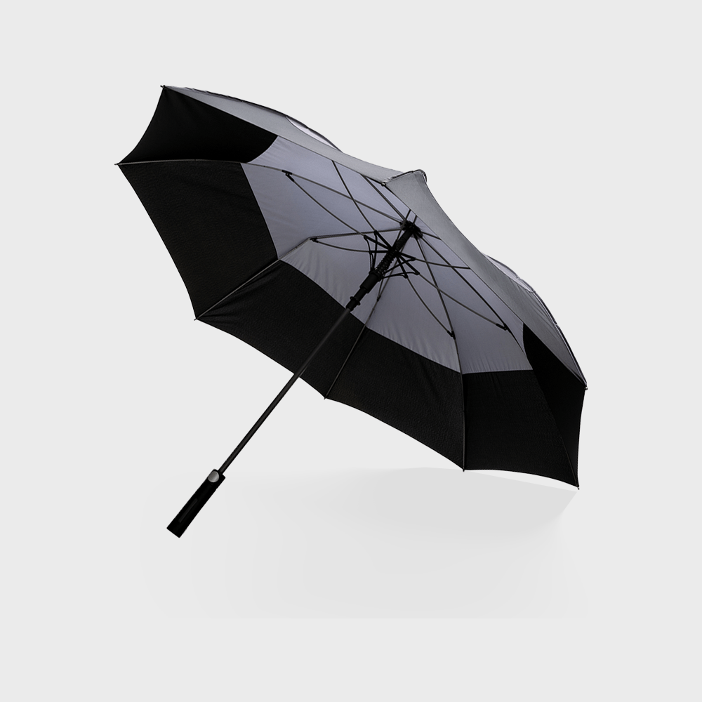 Restez au sec avec style grâce à notre parapluie à ouverture automatique doté d'un design bicolore distinctif. Fabriqué avec une armature métallique robuste, des baleines en fibre de verre durables et une poignée confortable en PP, ce parapluie résistant à la tempête est le compagnon idéal des jours de pluie. Qu'est-ce qui le distingue ? Sa toile écologique est fabriquée à partir de 11,3 bouteilles PET , ce qui permet d'économiser 6,7 litres d'eau.<br>