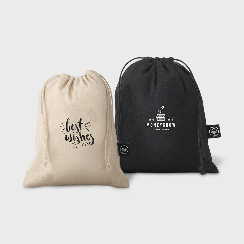 Pochette élégante conçue en coton recyclé, idéale pour les cadeaux ou le rangement. Avec cordons mélangeant polyester et coton recyclés. Certifié éco-responsable, alliant fonctionnalité et durabilité.