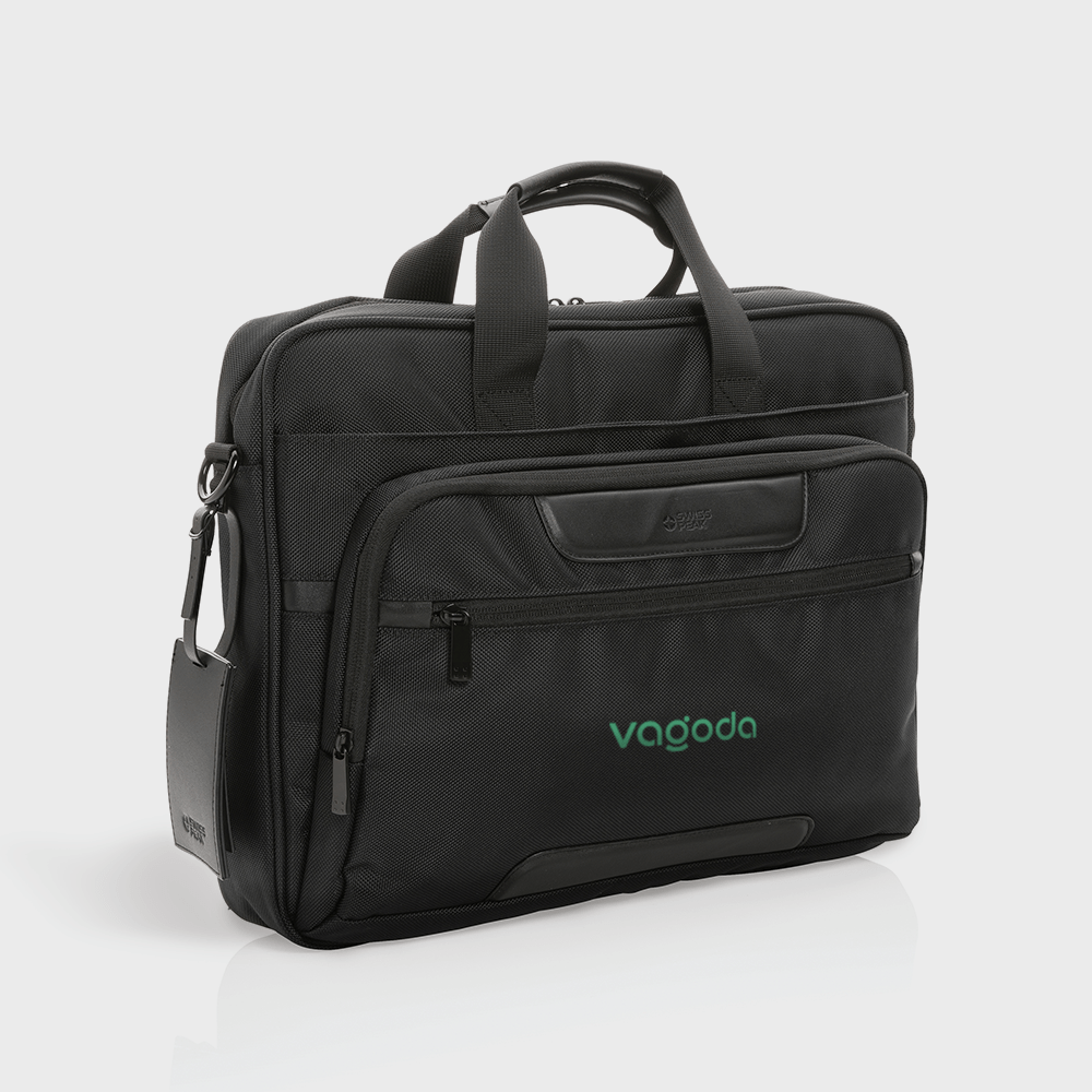 Sac en polyester recyclé 1680D durable avec de riches détails en PU et dispose de plusieurs poches pour le rangement et l'organisation. Ce sac dispose d'une poche rembourrée pour ordinateur portable de 15,6 et d'une poche supplémentaire pour vos objets essentiels. L'extérieur est fait de polyester recyclé 1680D, la doublure est en polyester recyclé 150D.