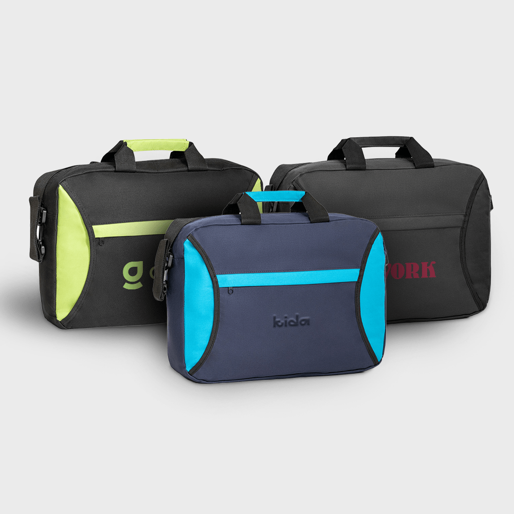 Sacoche multifonctions en 600D. Compartiment extérieur ouvert avec poche frontale zippée. La sacoche a une bandoulière réglable et des sangles de main renforcées.