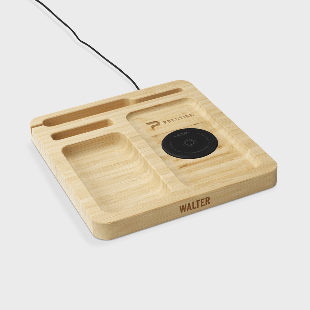 Gardez votre bureau sans encombrement et votre téléphone chargé grâce à cet organisateur. Fabriqué en bambou durable, il se double d'un puissant chargeur sans fil de 15 W avec connexion USB-C, prenant en charge tous les appareils compatibles Qi-. Parfait pour ranger les pièces de monnaie, les trombones, les articles de papeterie, les lunettes, les clés et votre portefeuille, il permet de s'assurer que tout ce qui est important est bien à portée de main. Dites adieu aux bureaux en désordre et aux batteries déchargées !
