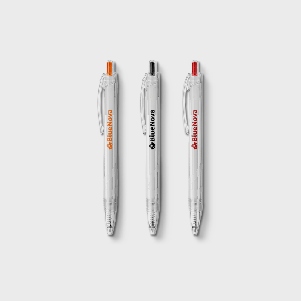 Stylo bille à bouton-poussoir fabriqué en RPET avec encre bleue. Disponible en plusieurs couleurs. Personnalisez le corps avec une impression jusqu'à 4 couleurs.