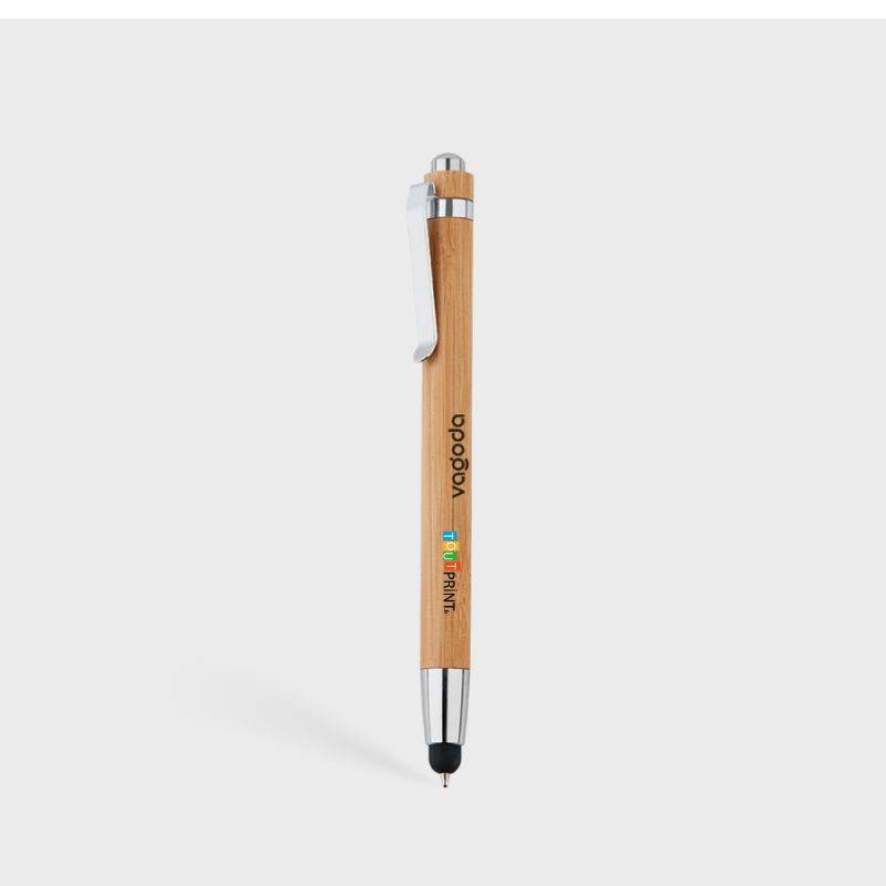 Ce stylet se distingue par son design unique mêlant bambou naturel et métal. Le corps en bambou confère une sensation agréable au toucher, tout en apportant une touche écologique et élégante. Le métal, quant à lui, ajoute une note contemporaine et robuste, garantissant une excellente durabilité. Le résultat ? Un objet aussi pratique qu’esthétique, qui s’intègre parfaitement à un environnement professionnel ou personnel.