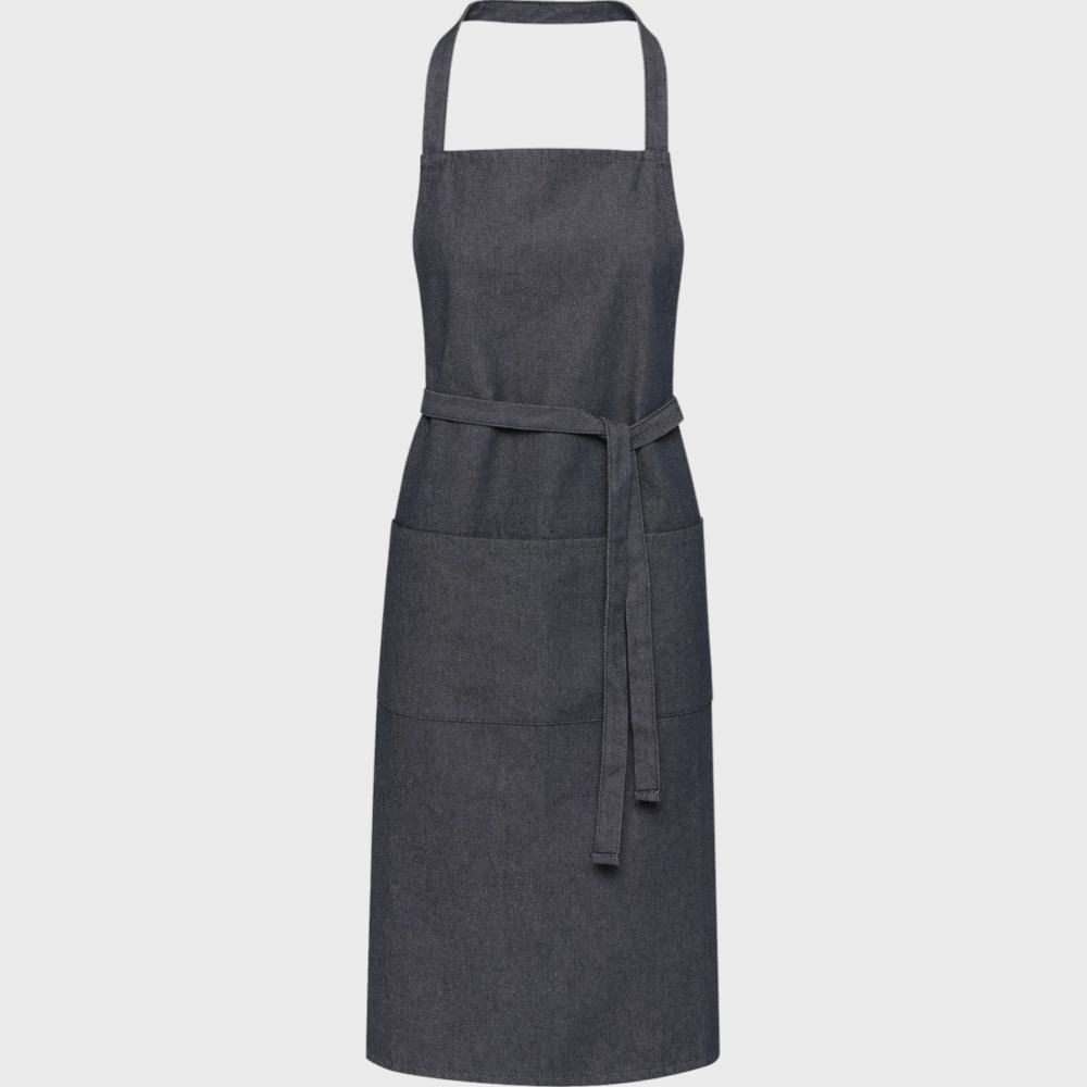 Fabriqué à partir de 70% de coton recyclé et 30% de polyester recyclé, ce tablier est épais, solide et confortable. Il comprend deux poches adjacentes et une fermeture à nouer d'un mètre pour un ajustement facile.