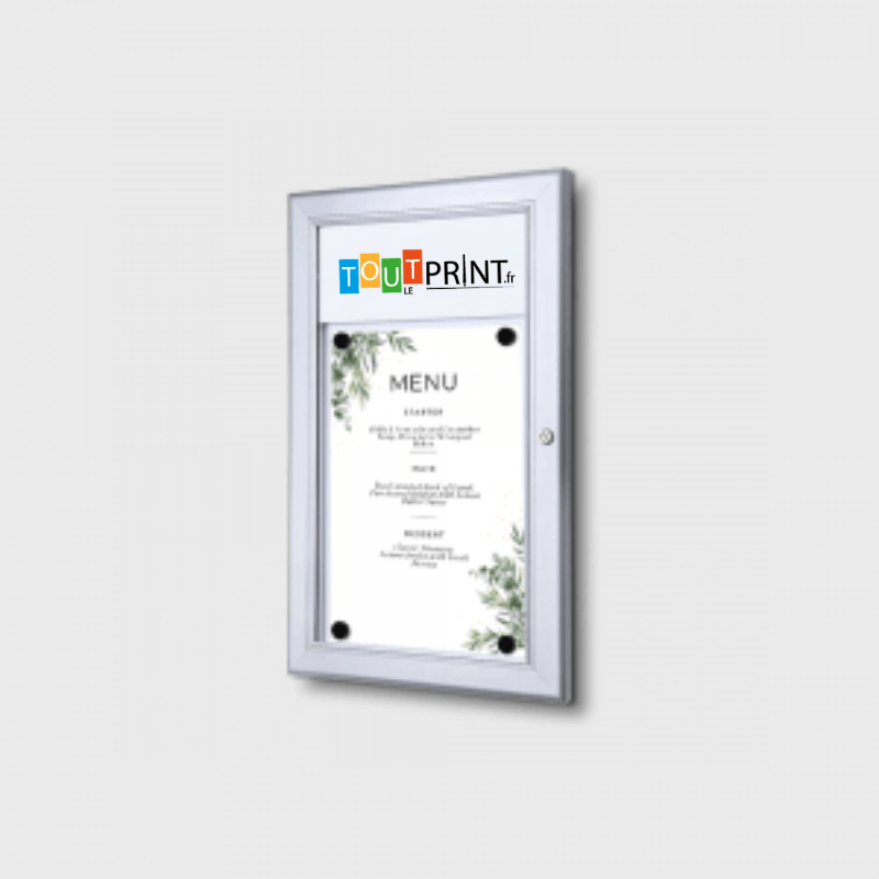 Alliez esthétique, sécurité et visibilité avec notre vitrine extérieure pour menu avec panneau logo personnalisable, idéale pour les restaurants, hôtels, institutions ou commerces souhaitant afficher leurs menus ou informations de façon professionnelle.